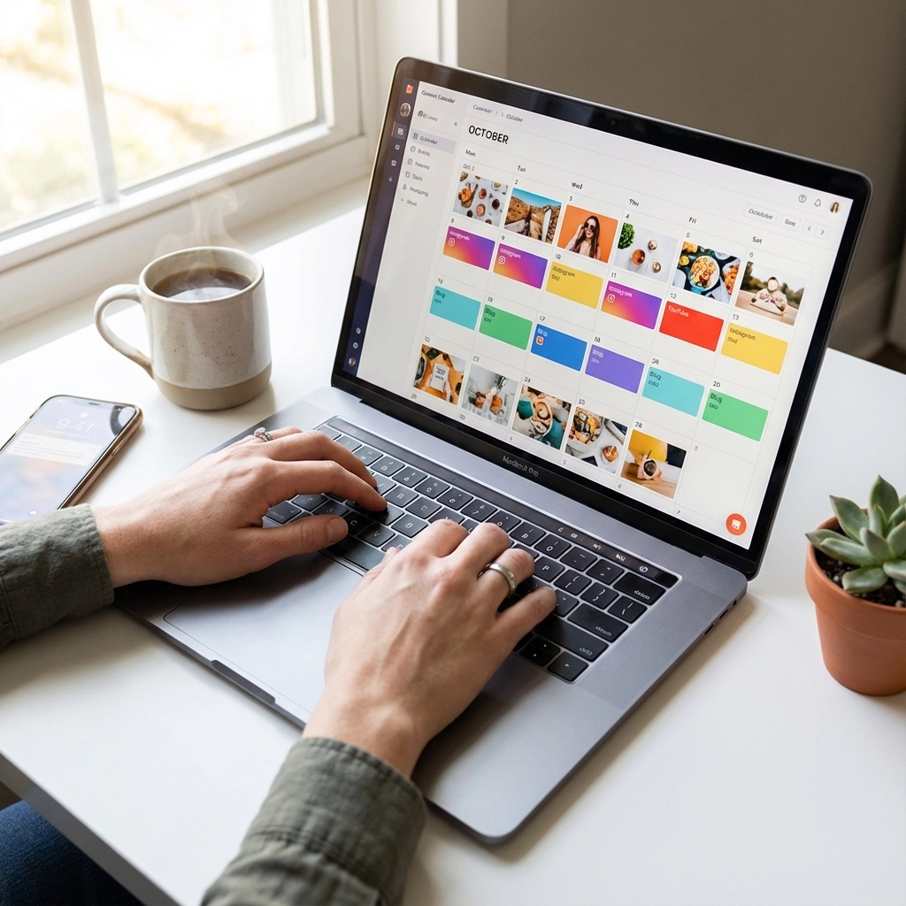 Visual consistency that people recognize instantly. Your colors, fonts, and imagery should feel cohesive whether someone sees your Instagram story or LinkedIn post. This doesn't mean everything looks identical, but there's a thread connecting it all.